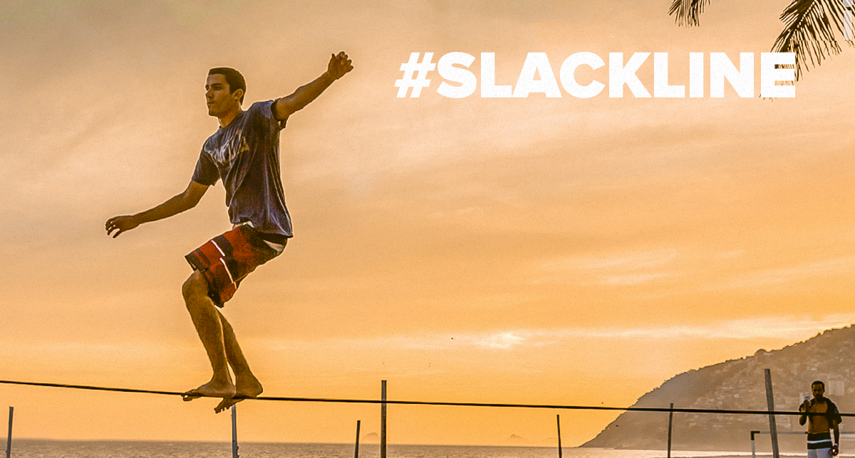 O slackline é um esporte que se popularizou e nos últimos tempos ganhou a cena. Ele pode ser praticado em qualquer lugar e no visual da praia, fica ainda melhor!