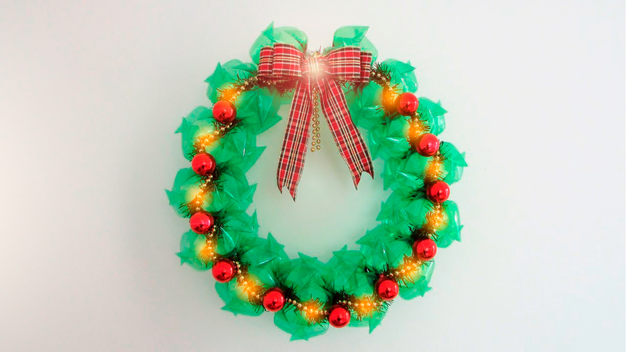 Aprenda a fazer uma guirlanda de Natal com garrafinhas pet
