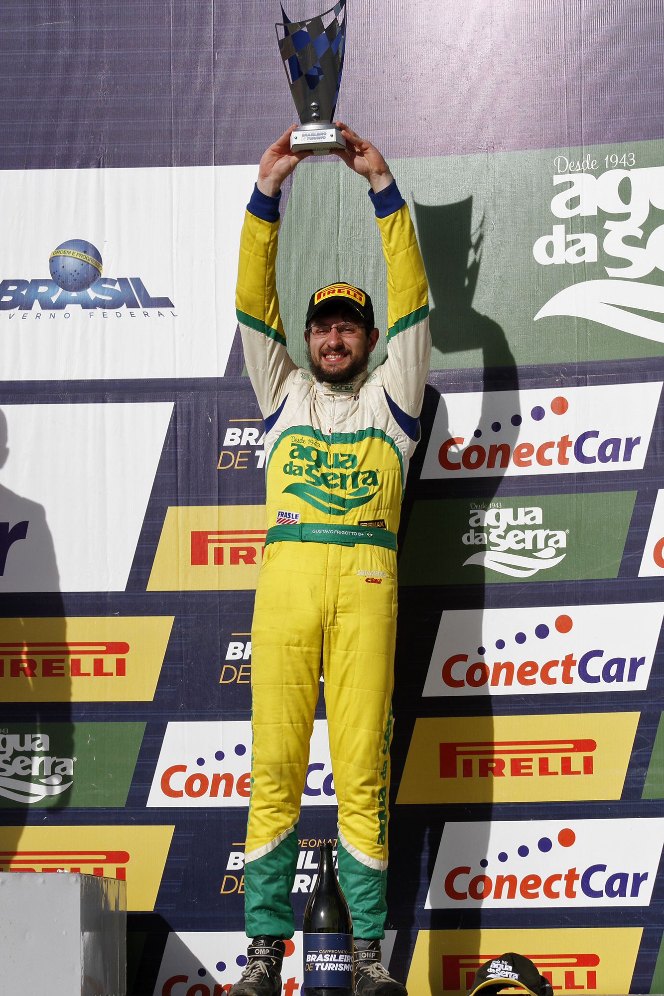 "A corrida foi bem complicada, esse pódio foi na raça", disse Gustavo. "O pedal de freio ia cada vez mais para baixo, em determinado momento eu tive que tirar o pé do acelerador para poder frear, para o pedal retornar. O carro freava e acelerava ao mesmo tempo", continuou.