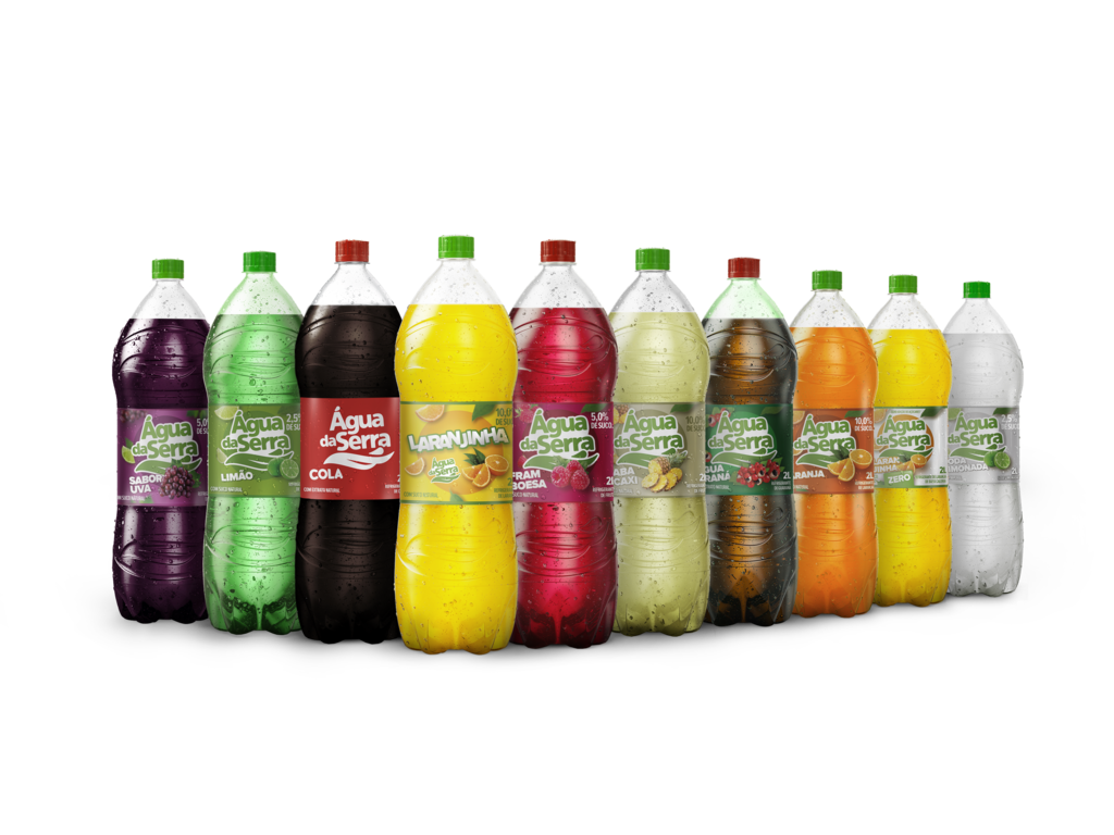 Em todas as regiões, a Água da Serra chega com todo seu portfólio, incluindo o mais famoso e inconfundível de todos eles: o refrigerante Laranjinha. Na linha de bebidas gaseificadas são mais oito sabores, como abacaxi, laranja, framboesa, guaraná, limão, soda limonada, uva e cola, e a versão zero do Laranjinha.