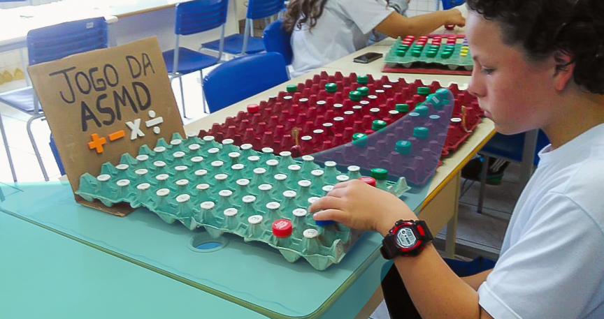 Para participar desse dia cheio de diversão com a criançada, nós ajudamos os alunos com projetos envolvendo matemática e sustentabilidade.
