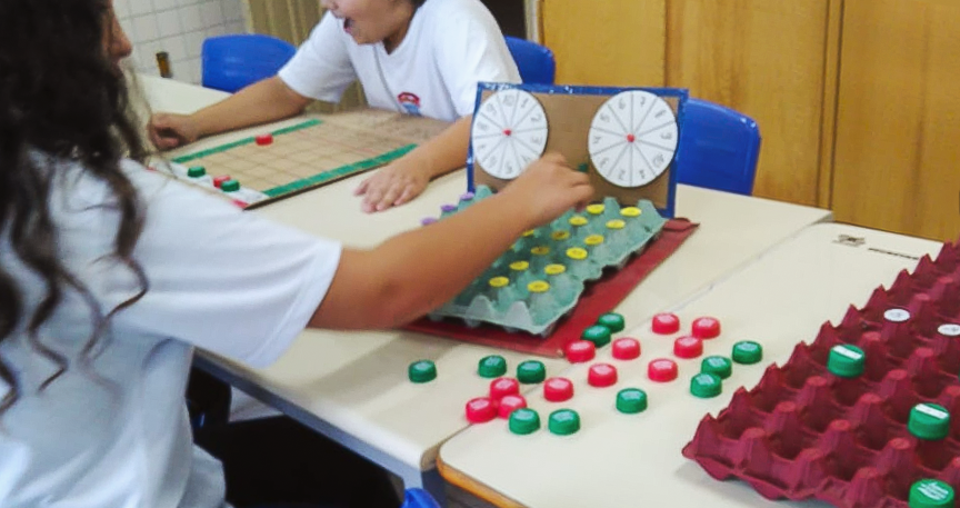 A turminha montou até jogos matemáticos com as tampinhas dos nossos refrigerantes!